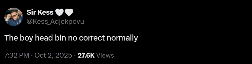 Another ex-BBNaija star, Sir Kess, was more critical of Faith with a post that questioned the mental state of the disqualified housemate: “The boy head bin no correct normally.”