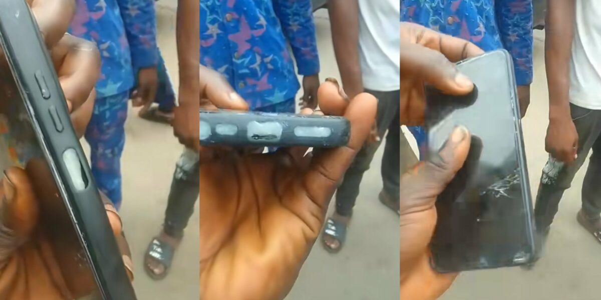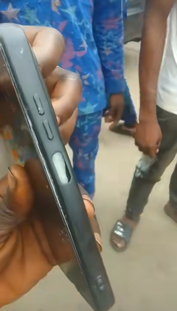 Young lady bursts into tears as she sees fufu inside the new phone she bought at Computer Village in Ikeja.