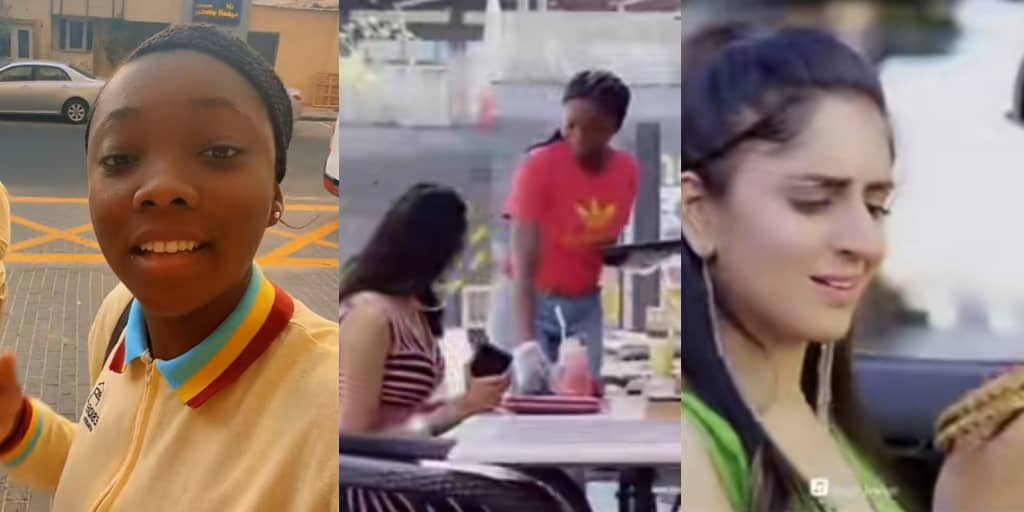 In the video, she is seen serving a drink to an Indian lady at a restaurant while pointing out a man who appears to be hiding, creating a romantic scene.