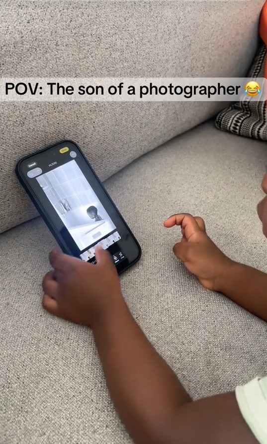 @fmi_dami Still not sure how Nemi figured out editing 😂. Son of a photographer so I guess it runs in the blood ❤️ His fav filter is black and white so once he gets a hold of my phone, he starts to apply B&W to my photos and videos. Such a talented king 😂❤️❤️ #babyphotographer #blackandwhite #edit #photoedit #filter @apple ♬ original sound – Damilola | Ottawa Creator 🇨🇦