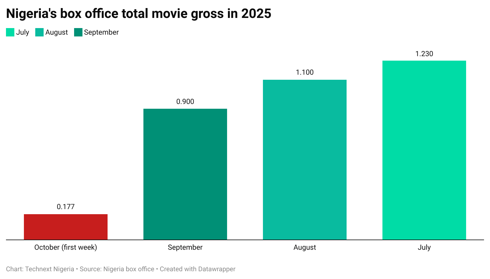 The current low in October cinema grossing follows a challenging September, which closed at just over N900 million in grosses. This result made September the second-lowest monthly total of 2025, highlighting a clear cooling of the market after a strong summer run.