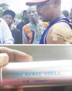 Some residents of the affected communities said they sighted helicopters flying on top of their villages. They suspected that the helicopters must have been bringing food and ammunition supplies for the bandits. One of the survivors displayed a teargas shell that he found after the bandits left. The inscription on the aluminium shell is: ‘Long Range Shell CS 38mm’, which, as gathered, is typically used by law enforcement and military units for crowd control and riot situations.