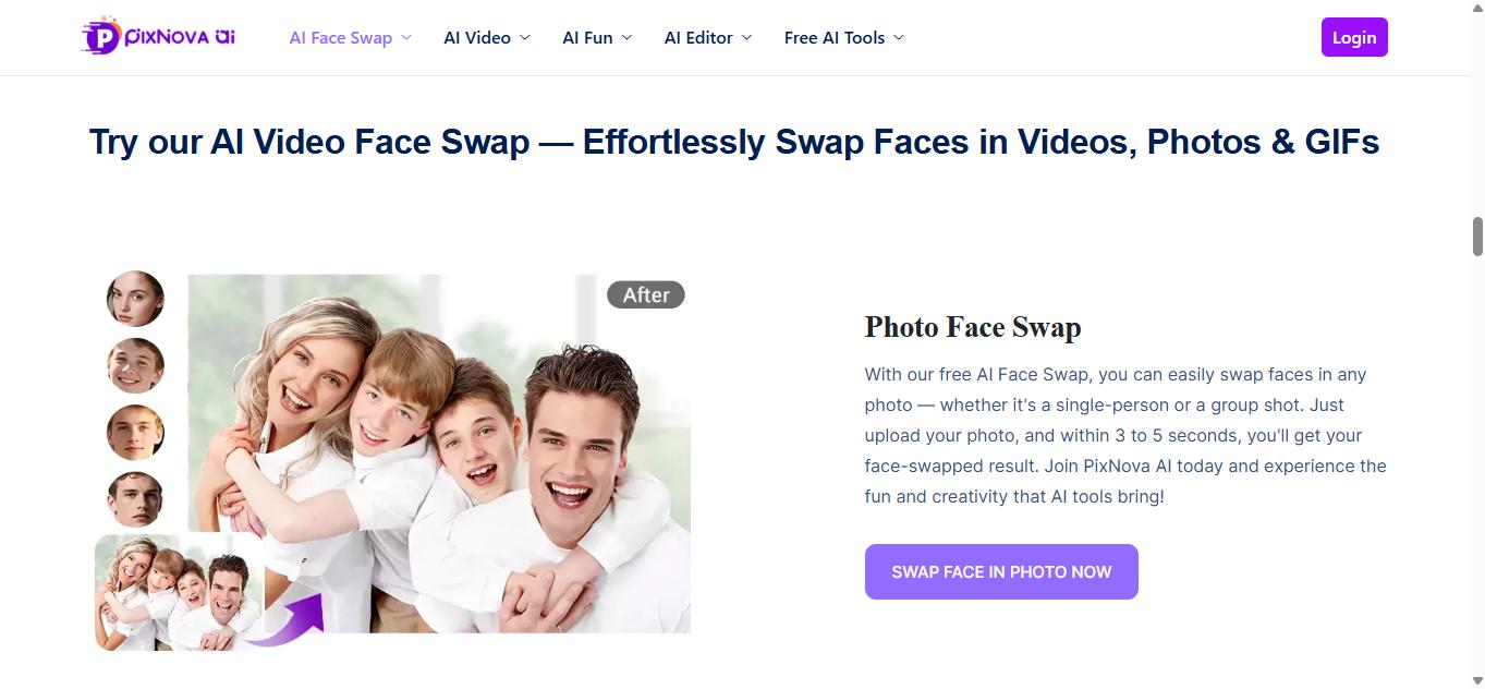 PIXNova AI Face Swap simplifies the process of creating viral posts that will leave everyone laughing. After a few clicks, you can create any face-swapped photo and video that appears as a professional image or video, and the best part? It’s completely free to use. Unlimited swaps and creations that you can make are available to you.