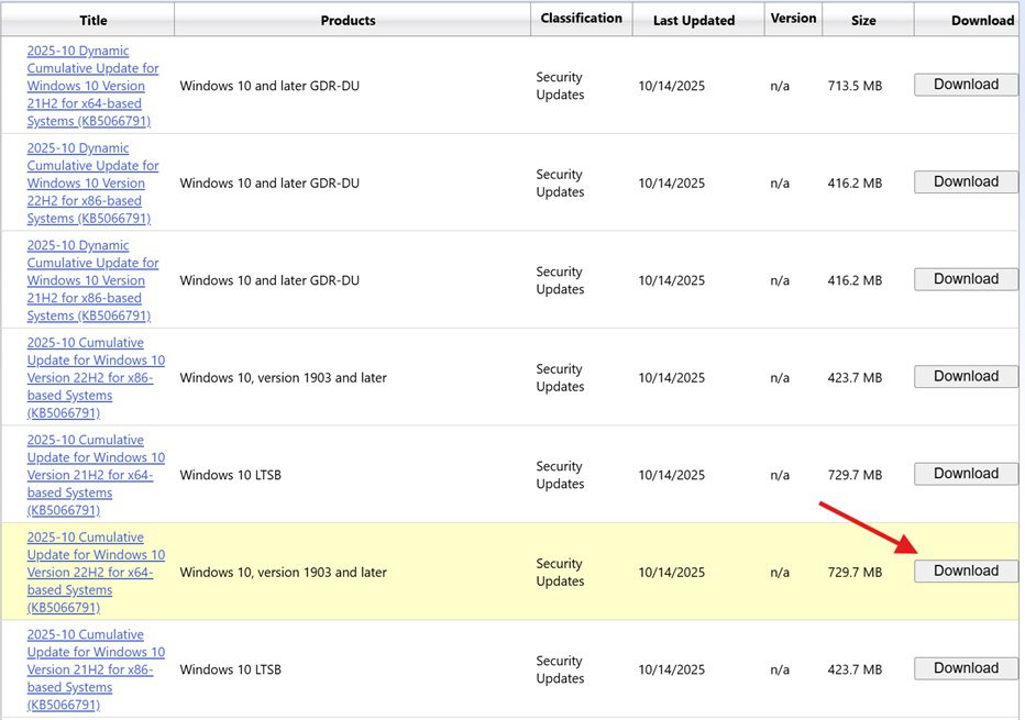Most PCs are 64-bit (x86). When you open the Update Catalogue, you’ll see a list of items; download the one that matches your specific PC architecture. Installing this update advances your PC to Windows 10 Build 19045.6456.